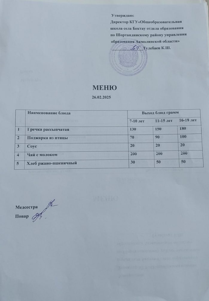Государственное коммунальное учреждение  "Общеобразовательная школа села Бектау отдела образования по Шортандинскому району  управлении образования Акмолинской области"