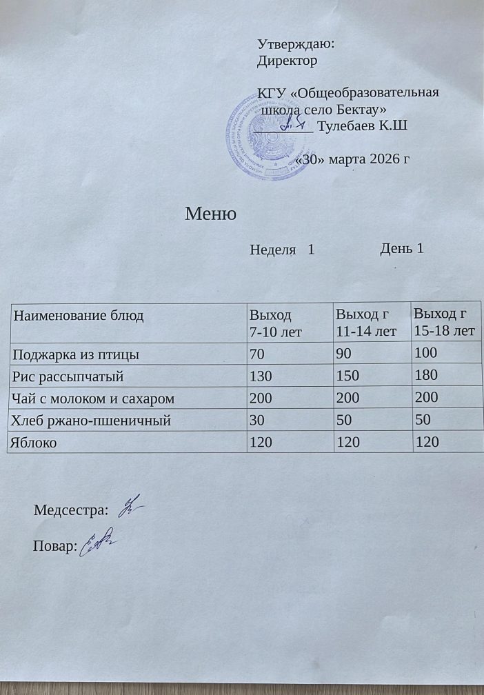 Государственное коммунальное учреждение  "Общеобразовательная школа села Бектау отдела образования по Шортандинскому району  управлении образования Акмолинской области"